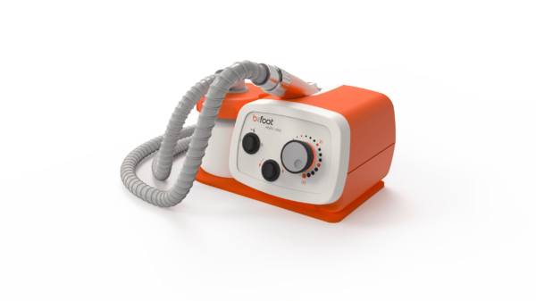 Mit seinem modernen Design in Orange/Weiß fügt es sich perfekt in jede professionelle Arbeitsumgebung ein. Das ansprechende Äußere wird ergänzt durch die hochwertigen Materialien und die sorgfältige Verarbeitung, die das Gerät besonders langlebig und zuverlässig machen. Als Netzgerät konzipiert, bietet das mini vac Fußpflegegerät zudem eine kontinuierliche und konstante Stromversorgung.