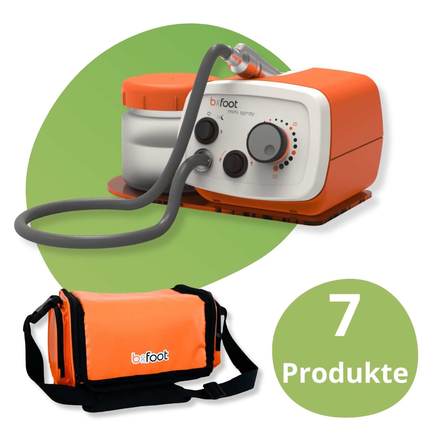 Das Herzstück des Sets ist unser Mini Spray: ein kompaktes, leistungsstarkes Fußpflegegerät, das eine beeindruckende Fräserdrehleistung mit integrierter Sprühfunktion in 3 Stufen kombiniert. Dank seiner besonders kleinen Bauweise ist es wie geschaffen für die mobile Fußpflege – ein echtes Alleinstellungsmerkmal.