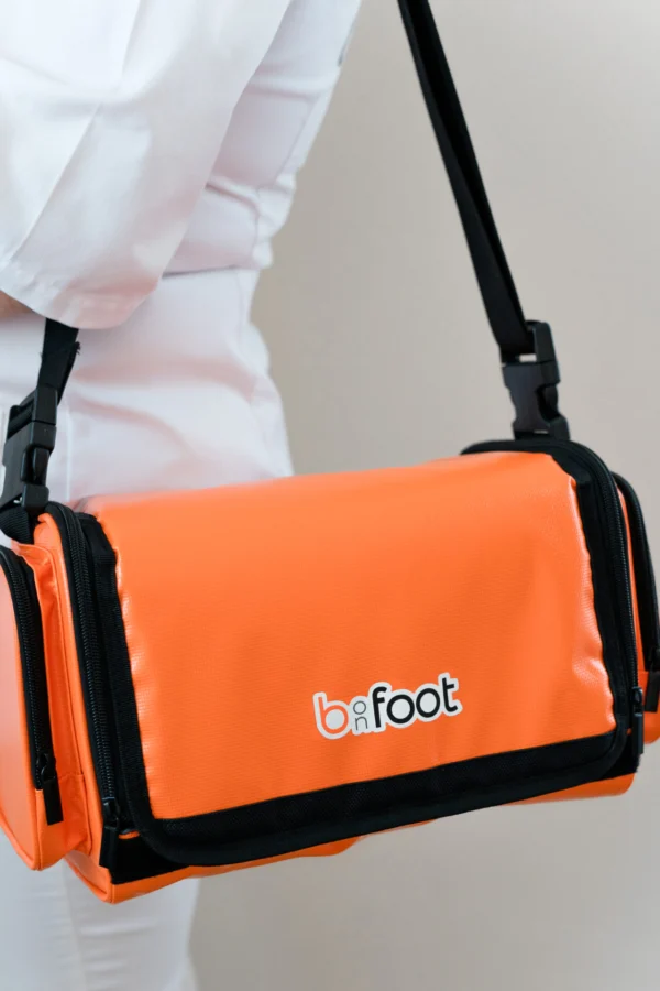 Die Tasche besteht aus einem Material, das einer LKW-Plane ähnelt, was nicht nur eine langfristige Nutzung ermöglicht, sondern auch eine einfache Reinigung und Desinfektion gewährleistet. Das abwischbare Material ist besonders wichtig, um eine hygienische Umgebung für Ihr Fußpflegegerät zu gewährleisten.
